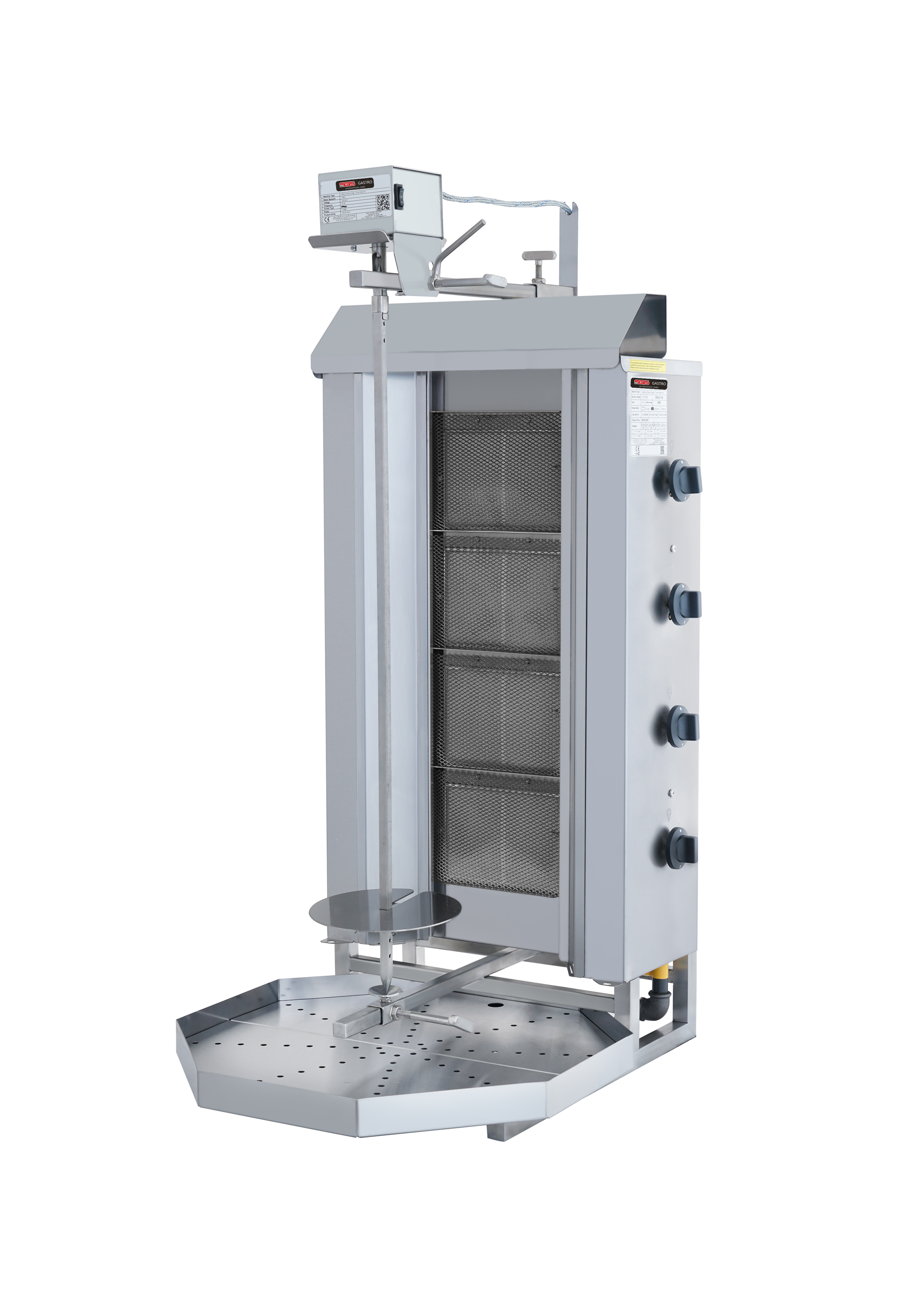 Egal, ob Sie ein professioneller Koch oder ein Imbiss sind, unsere 4-Flammen-Gas-Dönermaschine ist die perfekte Ergänzung für Ihre Küche. Mit seiner hochwertigen Konstruktion, der einfachen Bedienung und den konsistenten Ergebnissen können Sie im Handumdrehen köstliche Döner und Gyros zubereiten. Der obere Motor ermöglicht einen einfachen Zugang zum Fleisch, wodurch das Hinzufügen oder Entfernen von Fleisch aus der Maschine erleichtert wird. Bestellen Sie noch heute und erleben Sie den Komfort und die Effizienz einer professionellen Dönermaschine.